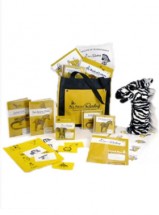 The materials themselves use single color line and shaded drawings for the illustrations, which remind me of more classical curriculums such as the McGuffy readers or some Waldorf-style materials. The Teachers Manual is easy to follow. Sidebars scattered throughout the book offer helpful hints and background information for the instructor. A box with dividers is provided to store the picture and letter cards for the program and the cards themselves are labeled so if one gets separated from the rest, you know which set it belongs with. Two sturdy hardcover books are part of the program which children will want to read repeatedly. A consumable workbook of mostly coloring and pasting activities and two posters are also included. The zebra puppet is sturdy and well made. These materials are very scripted. Although you might skip around, it would be difficult as the phonological awareness activities build upon each other.