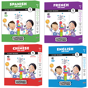 Language Together Set 1 is a box set of 10 first readers for children ages 3 to 8 who are beginning to learn a new language. The set is available in Spanish, French, Mandarin Chinese (Simplified and Traditional editions), and English. Each set includes access to the online audio narration by a native speaker.