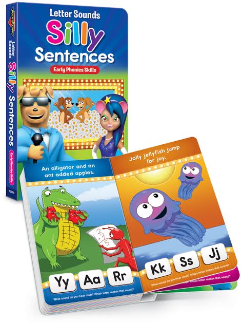 The Letter Sounds Silly Sentences book teaches the skills of letter identification and letter sounds. My 3-year-old loved the imagery in this book and the "game show" style letter identification. It's a great resource for helping young children learn the alphabet and develop phonemic awareness.
