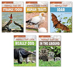 This 5-book hi-lo series uses fascinating facts about animals to introduce life science vocabulary and concepts. Titles include Animals that Eat Strange Foods, Animals that Share Human Traits, Animals that Soar, Animals that Look Really Odd and Animals that Live in the Ground.