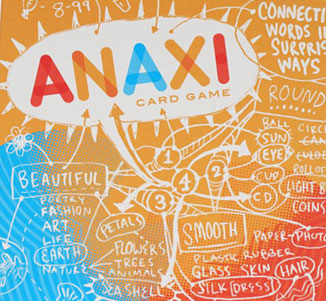 A Venn-diagram-inspired card game, where players connect words in surprising ways. During a round, draw 3 Anaxi Word Cards and overlap them. All players work at the same time and have 1 minute to write down as many people, places or things that share overlapping qualities. Players with original and unique answers score points.