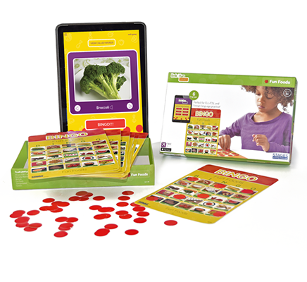 Bingo is a long-time favorite in preschools, early childhood classrooms and at home. Fun Foods Bingo combines the tried and true fun of bingo with beautiful real photos of 50 different foods, which are great for teaching health & nutrition and for building vocabulary. Kids won't even know they're learning while they search their players' cards to match the beautiful photographs with the words called by the instructor. With 36 cards, the game is perfect to play with the whole class or at home with family and friends.