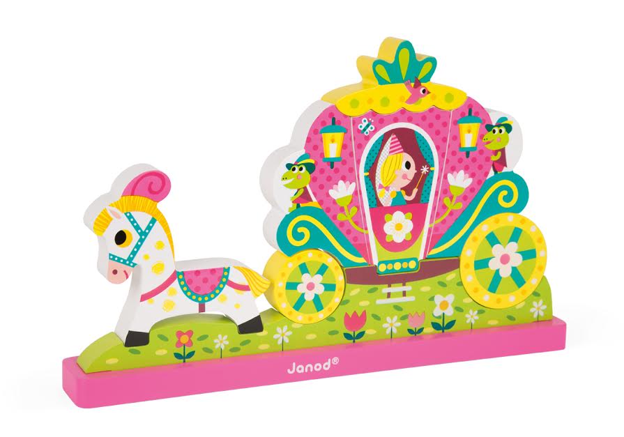 Janod Magnetic Vertical Puzzle - Princess takes your child on an awesome adventure as a princess rides to the ball in a horse drawn carriage.