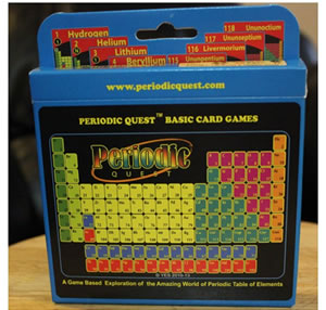 Periodic Quest Atomic Rummy Game is a beginner level card game. It is an adaptation of the popular "Rummy" card game to explore chemical elements and their properties and their arrangement of the Periodic Table of Elements.