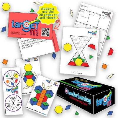 TarGET IT! provides math practice in a game format. Tied to grade level standards in Texas, it covers a wide variety of topics. A chart was provided that shows the topics practiced in each set of cards, allowing the teacher to choose the most appropriate set for play. Students are able to play the game independently because of the scannable codes on the cards that link to the answers.