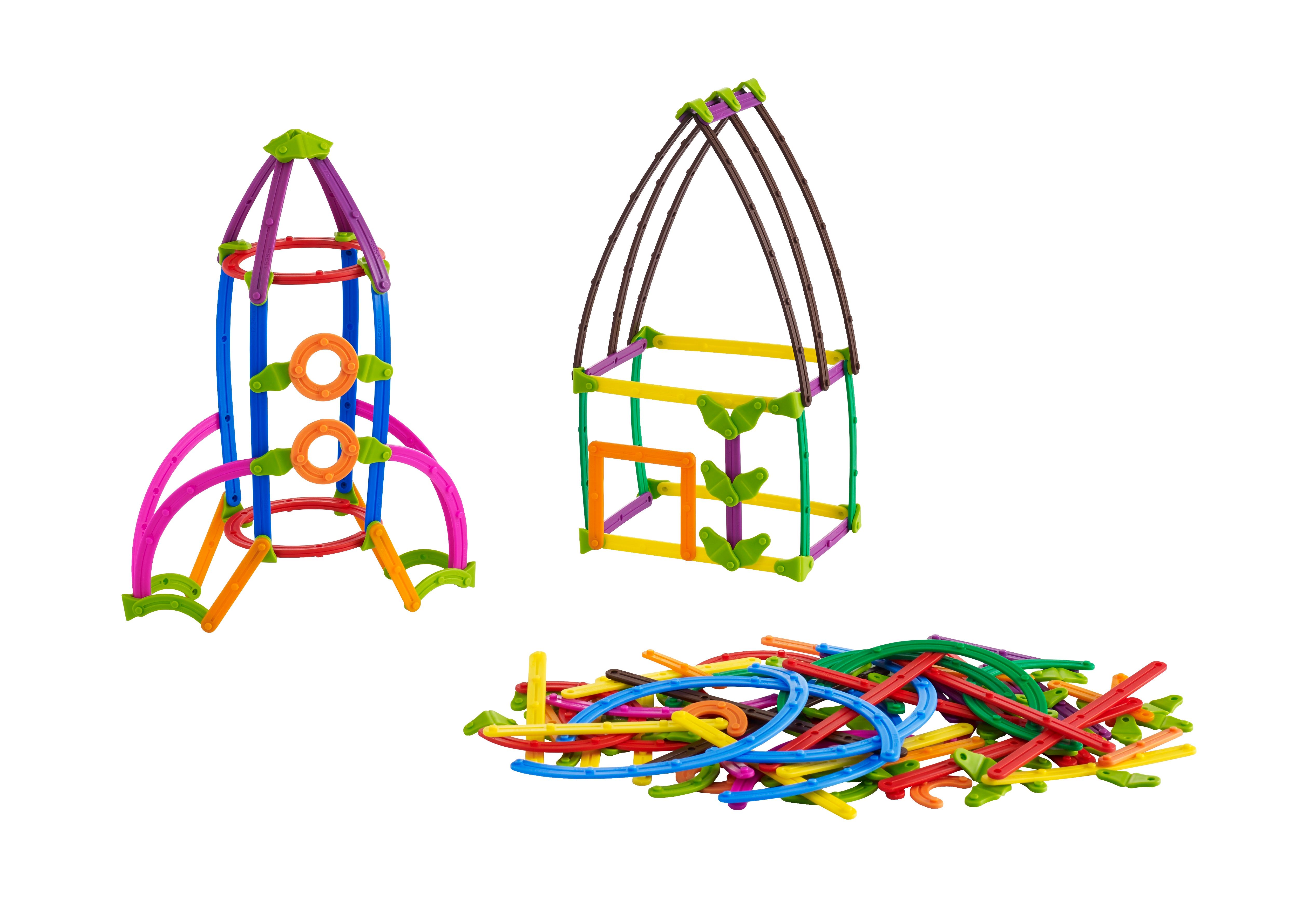 These hands-on, visual manipulatives foster creativity and demonstrate a variety of fundamental literacy concepts. The activities inspire play-based learning to make teaching fun! Designed for endless creativity, With multiple connection points and varying sizes, these flexible connecting sticks create colorful 2D and 3DGeoStixz. Make a rocket, camera, owl and so much more! 158pcs and an activity booklet - this literacy and creativity resource includes 158 curved and straight connecting sticks in 14 sizes and 10 colors. Great for in the classroom or learning at home.