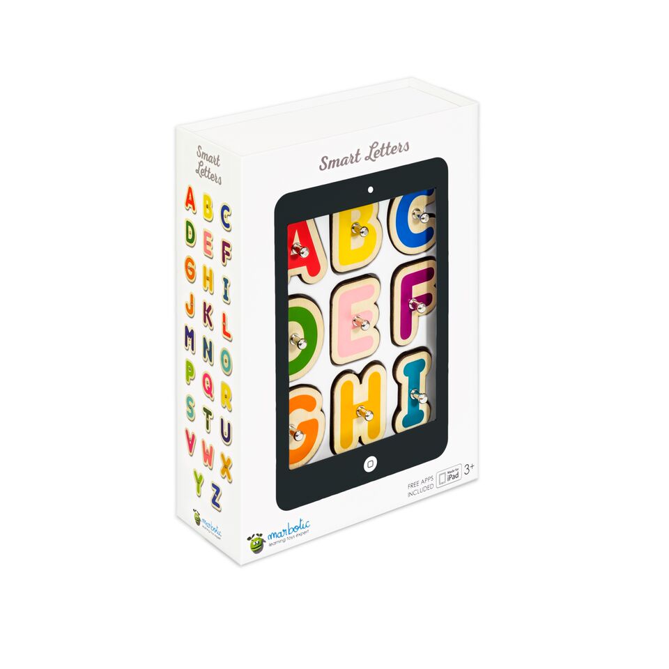 Smart Letters is the perfect blend of traditional toy and touchsccreen technology: it is a set of 26 connected wooden letters to learn to read and write to kids aged 3-6. Wooden letters interacts with the iPad screen thanks to 3 free apps: "Alphamonster" to discover letters's sound and modalities (upper case, lower case, cursive/script), "Vocabubble" to enrich vocabulary, and "Bla Bla Box" to compose syllables and words and let the iPad say them out loud. Based of Montessori method, Smart Letters helps kids to learn with their brain, their hands and their heart.