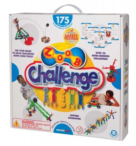 The ZOOB 175 Piece Challenge Kit allows you to design and build creations to solve challenges. There are 26 mind-bending challenges with multiple possible solutions: hitting targets, building a ramp, making balls bounce, build a zip-line and much more! This building set is for older kids and helps kids learn and apply S.T.E.M. principles (Science, Technology, Engineering and Math).